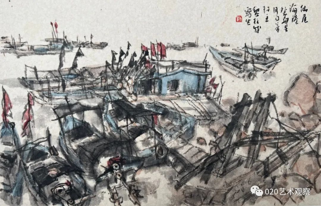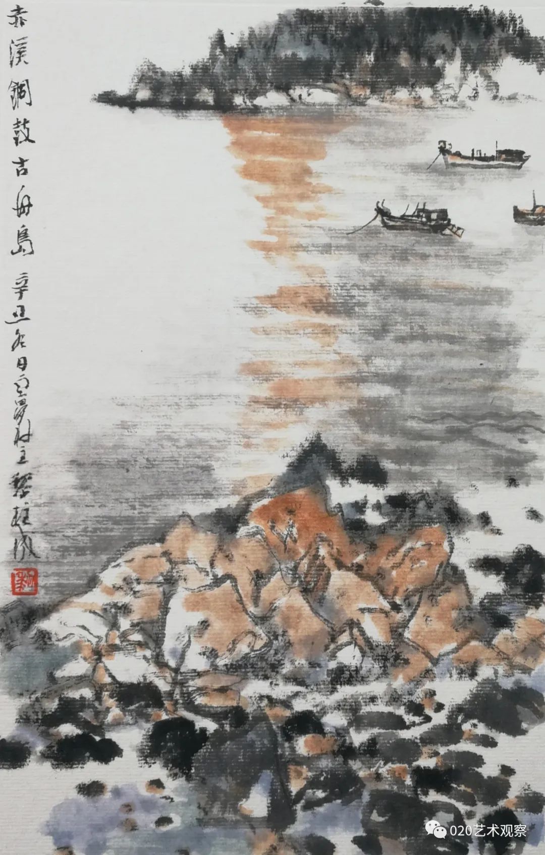 之后又读到了历代山水大家的作品,其中岭南画派所倡导以“折衷东西、融汇古今”为宗旨,新思维的“二高一陈”和第二代的关、黎等诸家作品令我印象深刻,从他们的作品中可以感受到直面生活,从写生中来所呈现出鲜活与生机而深受启发。