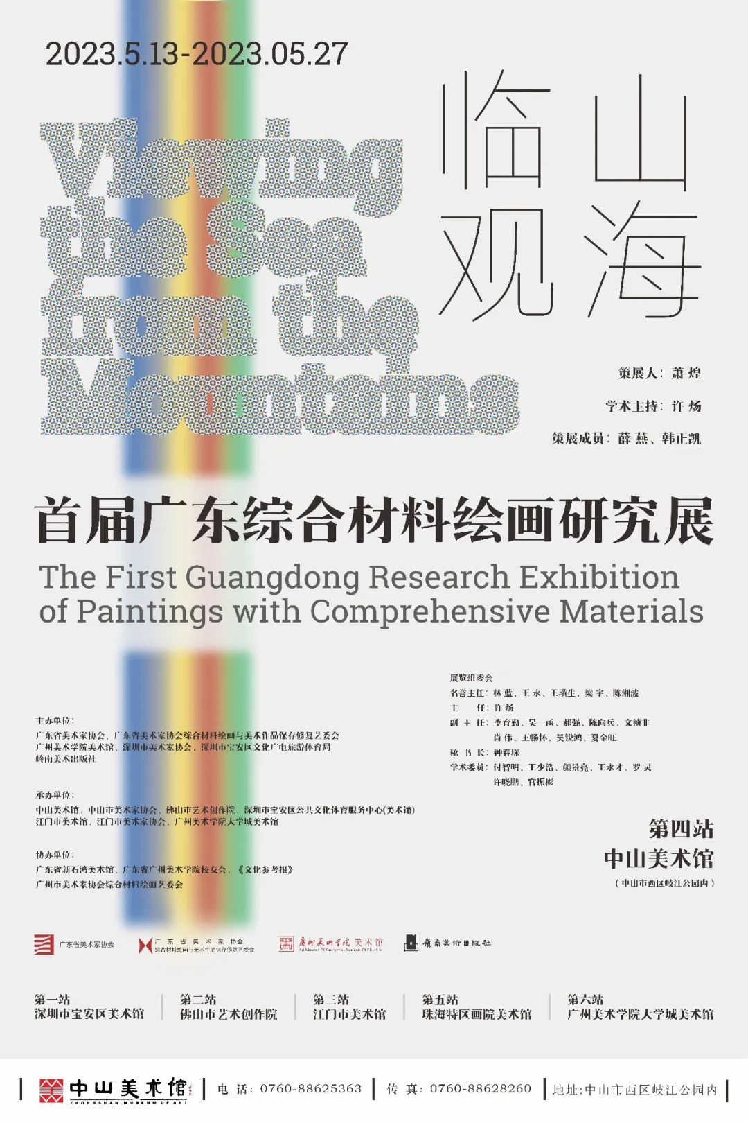 主办单位 广东省美术家协会 广东省美术家协会综合材料绘画与美术作品保存修复艺委会 广州美术学院美术馆 深圳市美术家协会 深圳市宝安区文化广电旅游体育局 岭南美术出版社 承办单位 中山美术馆 中山市美术家协会 佛山市艺术创作院 深圳市宝安区公共文化体育服务中心(美术馆) 江门市美术馆 江门市美术家协会 广州美术学院大学城美术馆 协办单位 广东省新石湾美术馆 广东省广州美术学院校友会 《文化参考报》 广州市美术家协会综合材料绘画艺委会 展览时间 2023年5月13日至5月27日 展览地点 中山美术馆 活动预告 “我和艺术家有个约会”专家导赏活动 活动时间:5月21日下午2:45-4:45 活动地点:中山美术馆 导赏嘉宾:许炀 活动对象:广大艺术爱好者及市民游客 许炀,广东省美术家协会综合材料绘画与美术作品保存修复艺委会主任,广州美术学院材料技法•修复研究室主任。 展品节选 许炀《剑谱之五》 罗灵《薯.莨纱》 肖伟 《殇》 颜景亮《盛世华灯》 付智明《千里烟波》 钟春琛《虚拟繁花》 陈定根《心之迹象》 肖骥《后疫新时代》 付子轩《界律》 胡梦琪《山中何处有》 潘玉玲《静域》 陈一萌《守护计划面象》 徐飞《窥-1》 陈小武《城市建构》 邹智怡《109号门牌旁》 黄发策《途行图说》