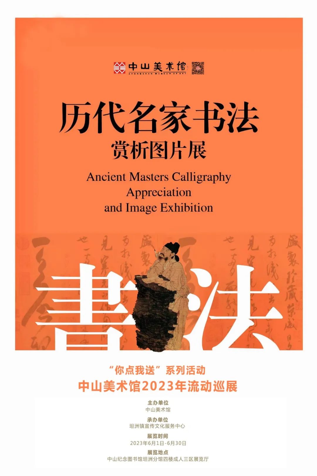 颜公变法出新意,细筋入骨如秋鹰。 徐家父子亦秀绝,字外出力中藏棱。 峄山传刻典刑在,千载笔法留阳冰。 ——节选 宋代 苏轼 《孙莘老求墨妙亭诗》 为弘扬中国书法艺术文化,让更多的人了解书法、喜欢书法,“你点我送”2023年中山美术馆流动巡展第二站——《历代名家书法——赏析图片展》于6月1日至6月30日在坦洲镇展出。 书法是民族文化的象征,以汉字为载体,与多种艺术相结合,承载着传统文化和民族精神;书法是中国传统文化的重要组成部分,是中国特有的艺术形式,被誉为“无色而有图画之灿烂,无声而有音乐之和谐”。书法艺术绵延至今,涌现大量的书法大家以及经典的传世之作。书法之情性,与一个时代的风气相关联;书法之格调意蕴,也是一个时代政局、人文等诸多环境因素相互作用的结果。 主办单位 中山美术馆 承办单位 坦洲镇宣传文化服务中心 展览时间 2023年6月1日至6月30日 展览地点 中山纪念图书馆坦洲分馆四楼成人三区展览厅 作品节选 李斯(秦朝)《峰山刻石》 李斯(公元前284年-公元前208年),字通古,汝南上蔡(今河南上蔡)人。秦朝著名政治家、文学家和书法家。统一文字,篆书、隶书因其独具一格,深受后人喜爱。中国书法四大书体真、草、隶、篆,隶、篆占其半壁江山,这全是李斯的功劳。 《峄山刻石》,建于秦始皇二十八年(公元前219年),现收藏于邹城市博物馆。字体苍古虬屈,质朴劲厚,圆转流丽,笔画细而匀整,为历代书法临习篆书的范本,实为研究文字发展史和书法艺术的珍贵资料。 蔡邕(东汉)《熹平石经》 蔡邕(133年-192年),字伯喈。今河南杞县南人。蔡邕工篆书、隶书,尤以隶书著称,其字结构严整,点画俯仰,体法多变。 《熹平石经》,建于东汉灵帝熹平四年(公元175年)至东汉光和六年(公元183年),部分藏于洛阳博物馆(24字)及北京图书馆。是中国刻于石碑上最早的官定儒家经本。《熹平石经》规模浩大,气势恢宏,是东汉时期尊崇儒学、经学发达等诸多社会历史原因所产生的文化瑰宝,作为我国历史上最早的儒家经典石刻本,《熹平石经》对人们校对版本、规范文字提供了准确的范本。同时也对其后历朝历代以经典文献为内容的大规模刻石具有一定的启发意义。 王羲之(东晋)《兰亭集序》 王羲之(303年-361年,一说321年-379年),字逸少,东晋时期书法家,有“书圣”之称。琅琊临沂(今山东临沂)人。后迁会稽山阴(今浙江绍兴)。其书法兼善隶、草、楷、行各体,精研体势,心摹手追,广采众长,备精诸体,冶干一炉,摆脱了汉魏笔风,自成一家,影响深远。风格平和自然,笔势委婉含蓄,遒美健秀。 《兰亭集序》,于公元353年创作的行书书法作品,虽真迹不存于世,但唐代的精摹本历来被当作真迹看待。它的成就体现在书法艺术。通篇气息淡和空灵、潇洒自然;用笔遒媚飘逸,手法既平和又奇崛,大小参差,既有精心安排艺术匠心,又没有做作雕琢的痕迹,自然天成。 为深入贯彻落实党的二十大精神,创新实施文化惠民工程,不断提升公共文化服务水平,促进供需有效对接,深入开展文化惠民工程和文化暖心工程,浓墨重彩书写好“文化兴城”这篇大文章,2023年中山美术馆流动巡展准备了《历代名家书法赏析图片展》《岭南潮声——粤港澳大湾区摄影精品展》《中山市乡村文化振兴主题美术创作暨优秀作品巡回展》《中国传世名画赏析图片展》《世界经典油画赏析图片展》五套展览,通过“你点我送”平台由全市各镇街宣传文化中心、各中小学校、社区、企业等自主点选后配送。