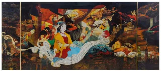 师雪雁 《斑斓草梦》 漆画 80x80cm