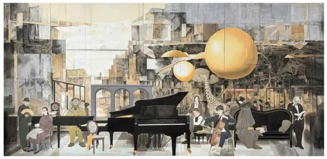 肖伟 《唯有音乐和阅读可以安抚这纷繁的世界》 壁画 168x350cm